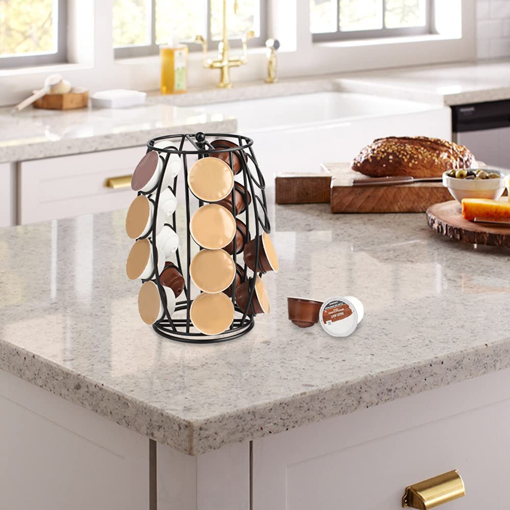 【Easy to Display】This coffee pod holder carousel is compatible with K Cups and directly showcases up to 20 of your favorite coffee pods. Coffee cup holder displays labels of coffee pods upwards,which makes it simple and convenient to find and choose your preferred flavor.