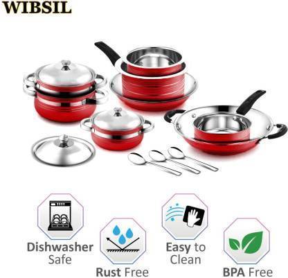 WIBSIL Induction Bottom Cookware Set (Steel, 14 - Piece)